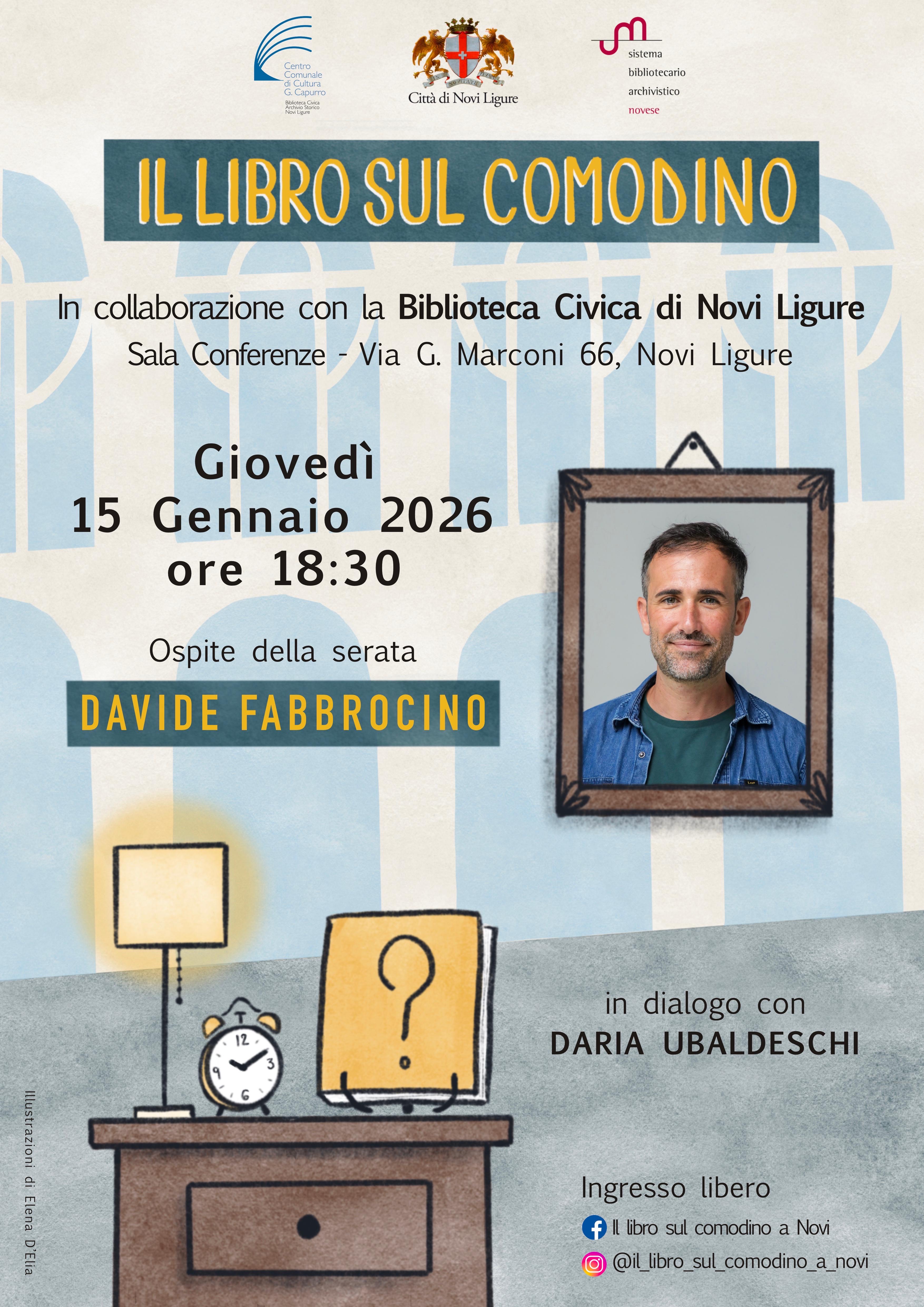 L’incontro de “Il libro sul comodino” che apre il 2026 – il 15 gennaio presso la sala Conferenze della Biblioteca civica (via Marconi 66), alle ore 18,30, - è quello con Davide Fabbroccino, attore, autore e intrattenitore.