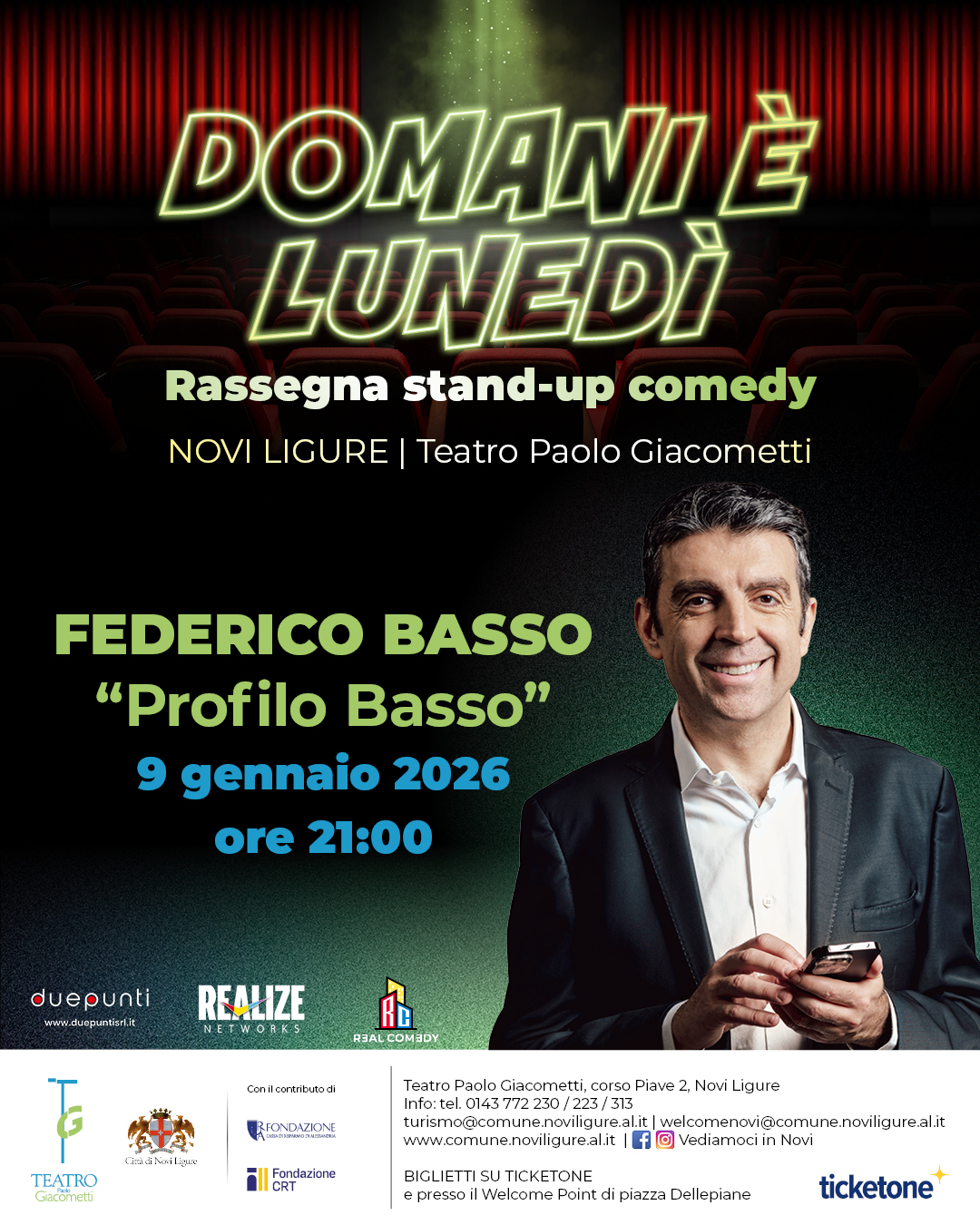 Il 9 gennaio parte ufficialmente la nuova rassegna di stand-up comedy di Novi Ligure "Domani è lunedì" con