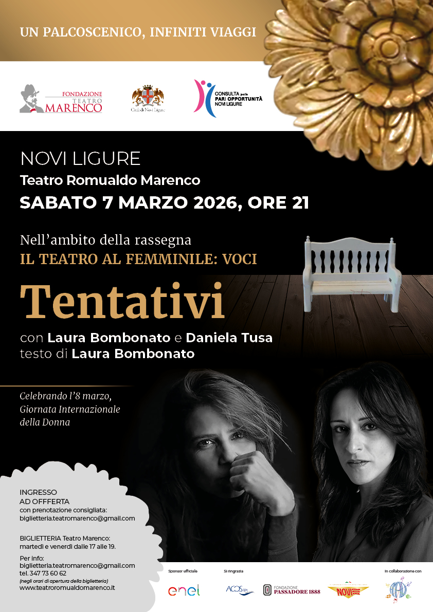 Il weekend si concluderà al Teatro Romualdo Marenco (via Girardengo 48), sabato 7 marzo alle ore 21, con lo spettacolo "Tentativi", parte della rassegna "Il teatro al femminile: voci". In scena Laura Bombonato (autrice del testo) e Daniela Tusa. Lo spettacolo esplora, attraverso il linguaggio teatrale, le sfumature dell'universo femminile, celebrando la forza e le voci delle donne.