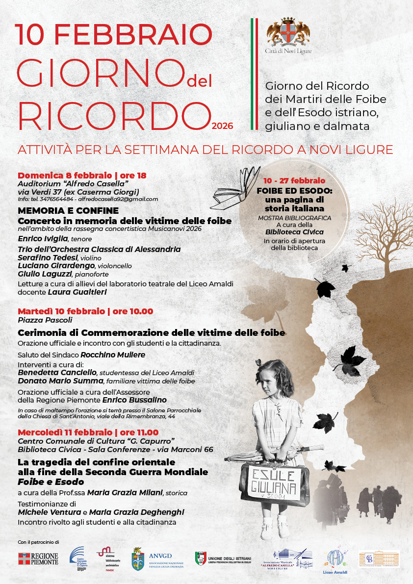 Martedì 10 febbraio ricorre il Giorno del Ricordo in memoria della tragedia degli italiani e di tutte le vittime delle foibe, dell’esodo dalle loro terre degli istriani, fiumani e dalmati nel secondo dopoguerra e della più complessa vicenda del confine orientale.