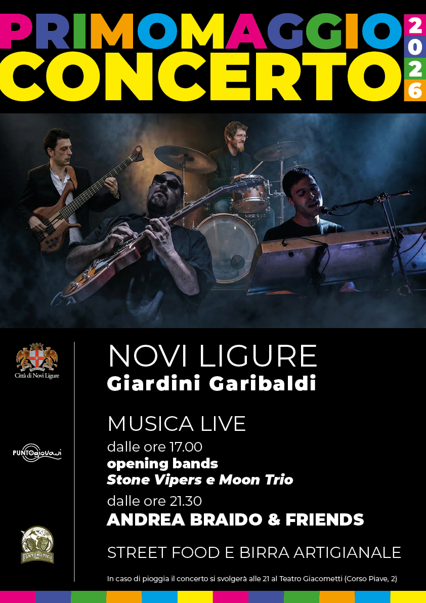 La festa proseguirà nel pomeriggio, sempre nell’area dei Giardini Pubblici, con il concerto del primo maggio organizzato dal Puntogiovani in collaborazione con l’associazione “Fantomatica”. L’evento si apre alle ore 17 con le opening bands Stone Vipers e Moon Trio. Il clou della serata è previsto per le ore 21,30 con il concerto di Andrea Braido & Friends. L’area della manifestazione sarà animata da una proposta di street food e birra artigianale. In caso di maltempo, il concerto si svolgerà alle ore 21 presso il Teatro Giacometti.
