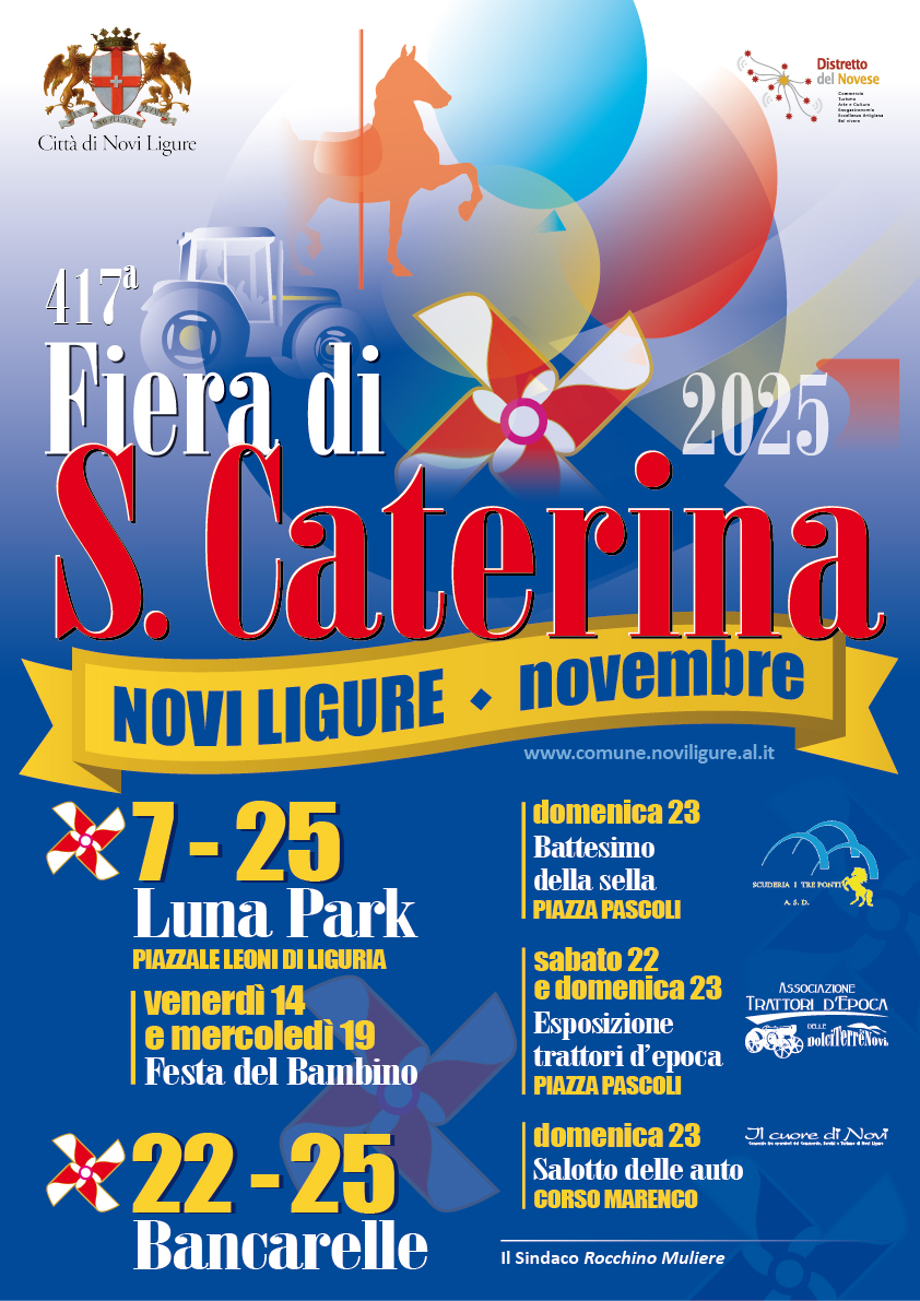 Si avvicina l’atteso appuntamento con la tradizionale Fiera di Santa Caterina che quest’anno festeggia la 417esima edizione. Il programma della manifestazione, promossa dal Comune di Novi Ligure, propone numerose iniziative che uniscono divertimento, cultura e tradizione.