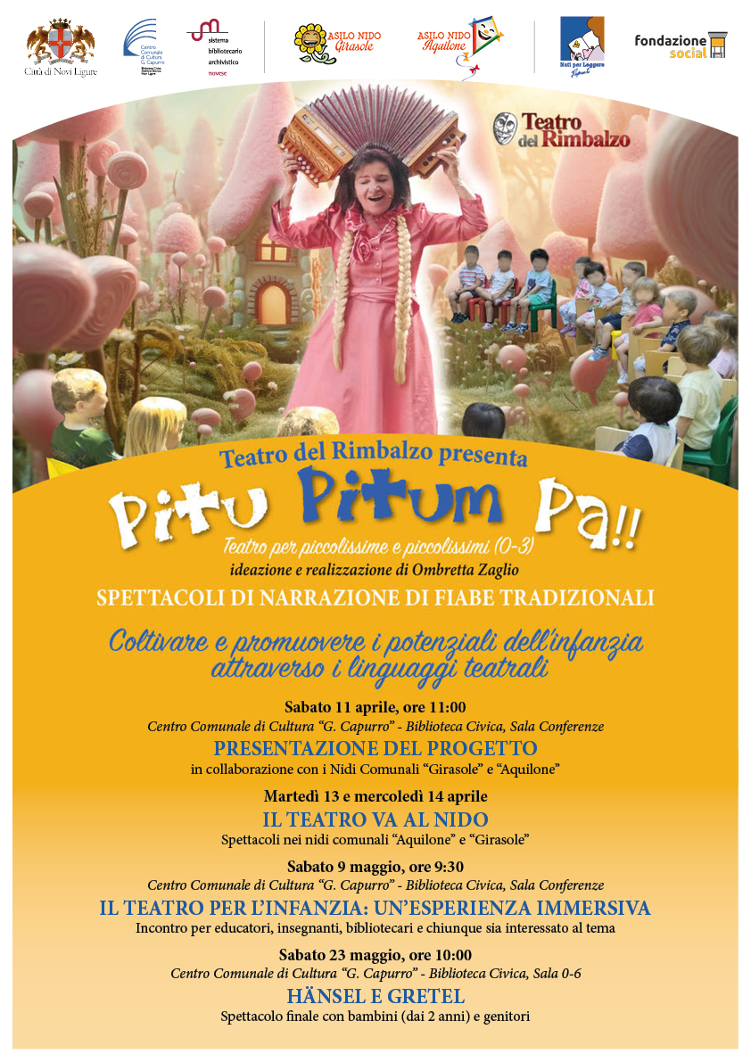 La città di Novi Ligure si prepara ad accogliere un’iniziativa dedicata alla prima infanzia. Firmato da Ombretta Zaglio (stimata autrice, attrice, regista e direttrice de Il Teatro del Rimbalzo), il progetto si intitola “Pitu pitum pa!” e propone un viaggio suggestivo tra narrazione, gioco e formazione. Nato dalla stretta collaborazione tra la Biblioteca Civica e i Nidi Comunali, il percorso si integra perfettamente con la filosofia di Nati per Leggere, di cui la biblioteca novese è promotrice da diversi anni.