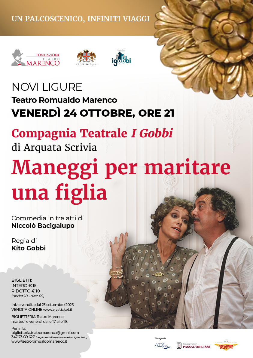 Teatro Romualdo Marenco 24 ottobre 2025, ore 21 – MANEGGI PER MARITARE UNA FIGLIA